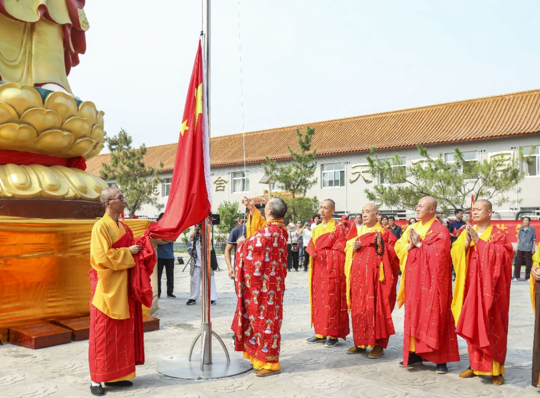 升旗仪式后,常净大和尚向全体人员发出倡议,希望大家积极倡导爱国爱教、正信正行的理念,遵守国家法律、遵守佛法戒律,做一个无愧于国家、无愧于社会的合格佛教徒。